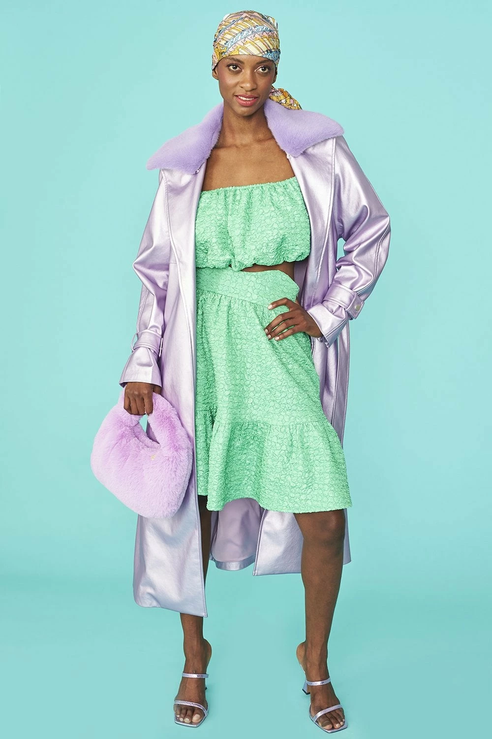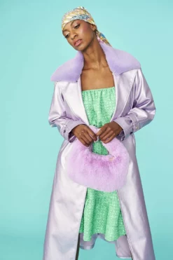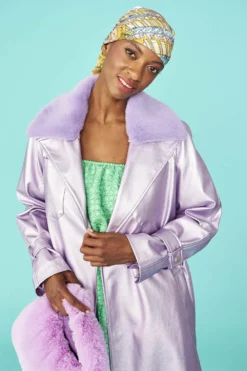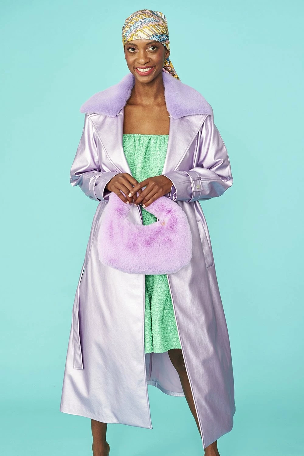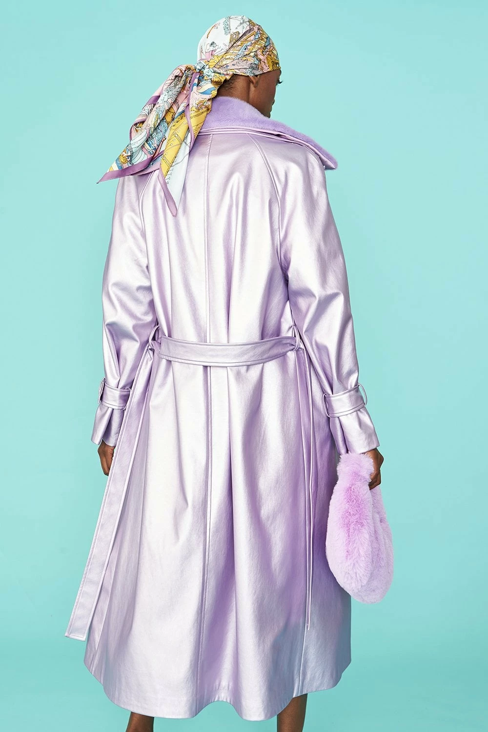 Metallics are a staple piece this AW and this lilac trench has donned the catwalk at all angles. Featuring classic lapels and a belted waist with pockets.