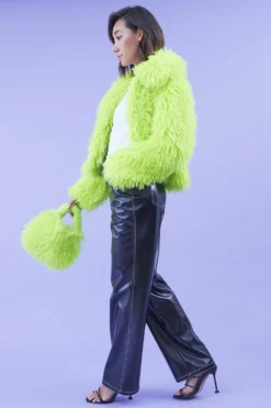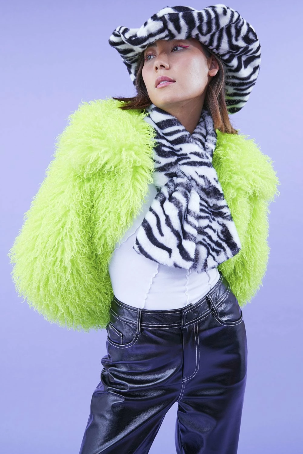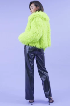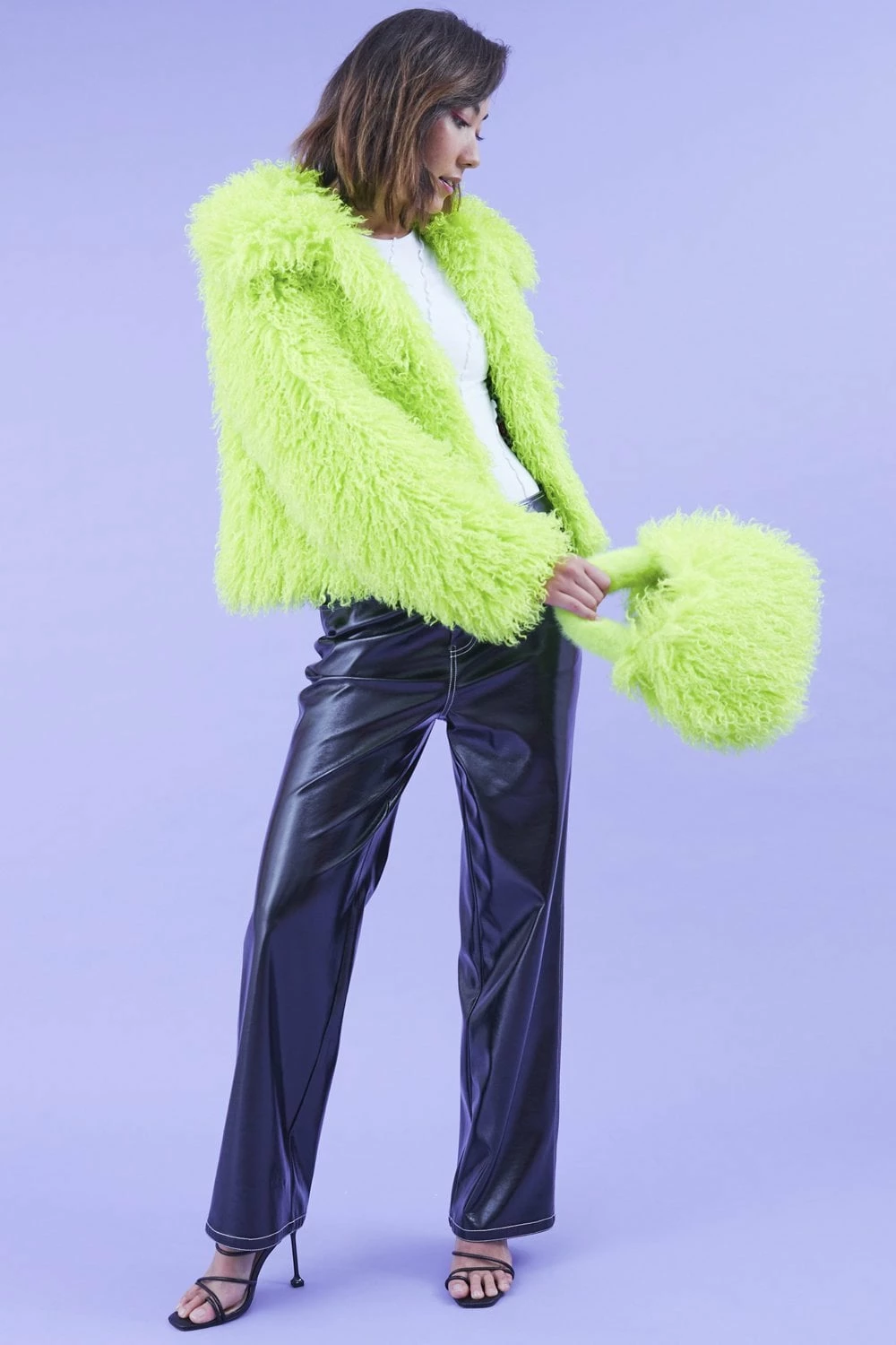 The perfect transitional piece. Warm and cozy yet lightweight and breathable, our latest Mongolian fur jackets are absolutely adorable. This jacket features hook eye fastening, a v-neckline, and full-length sleeves.