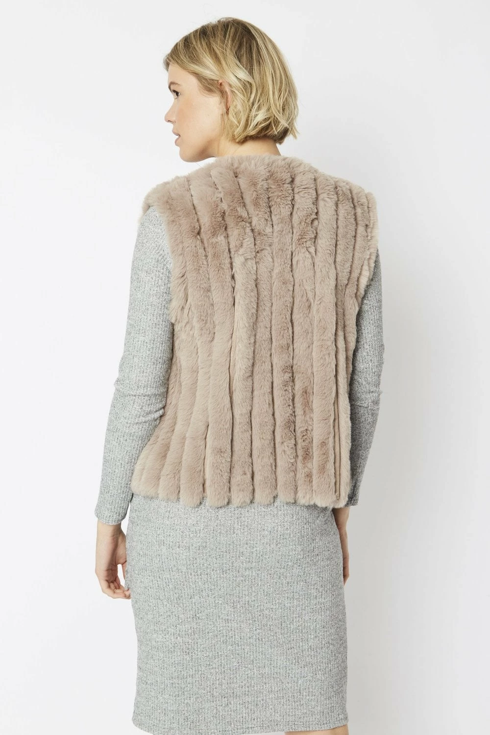 If you love to layer, then this faux fur and faux suede gilet is just what your collection needs. Featuring flattering vertical panneling, front hook and eye fastenings and a V-neck line.