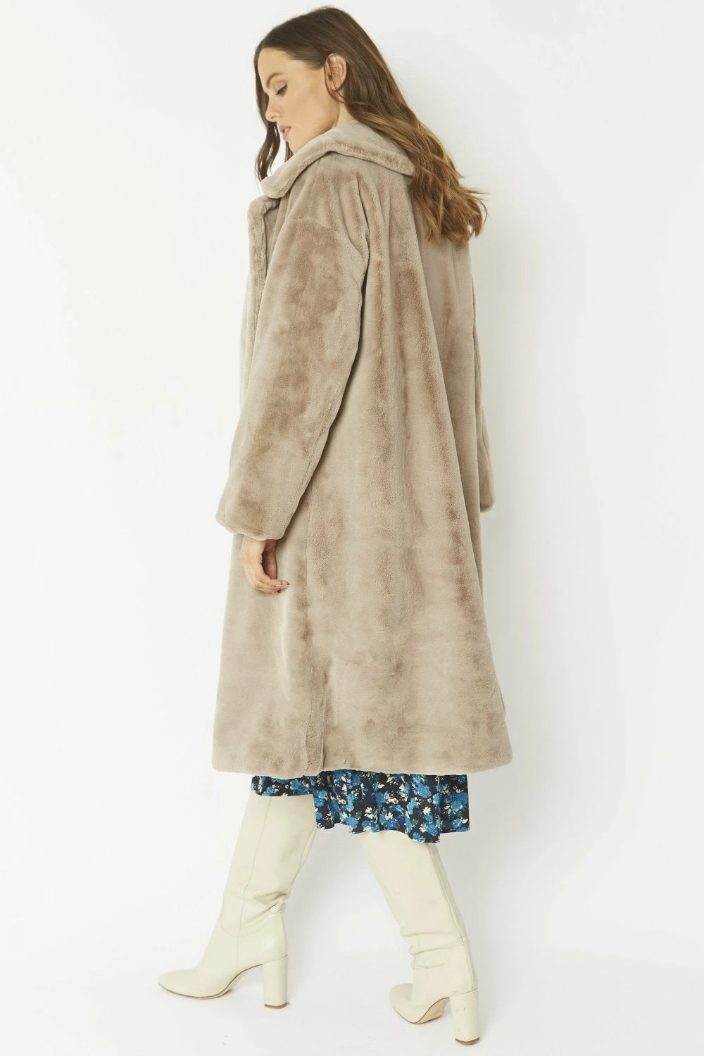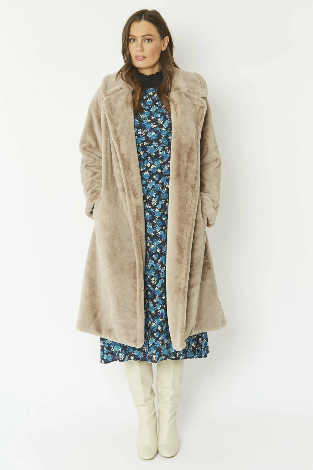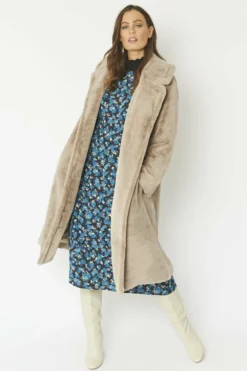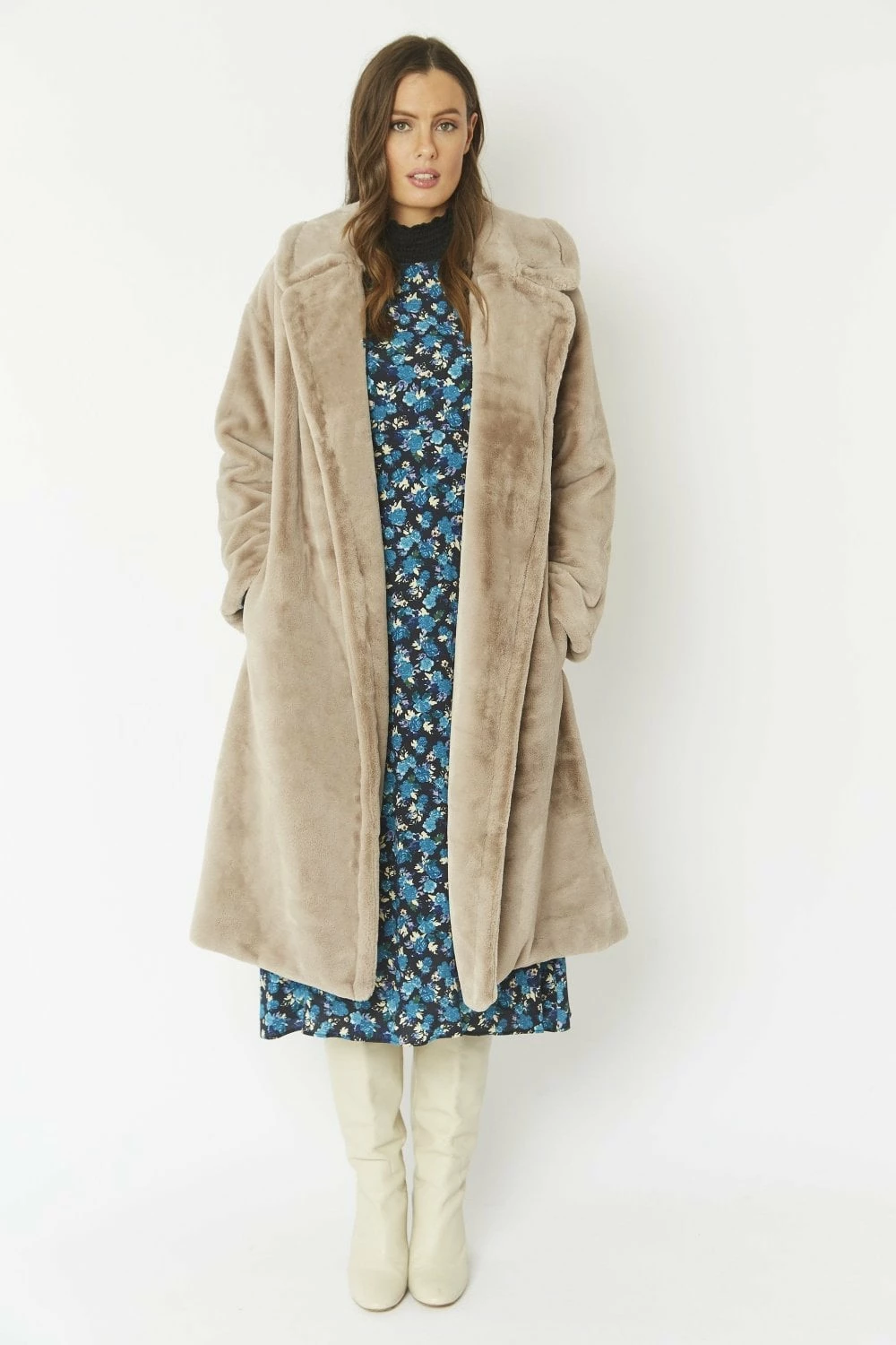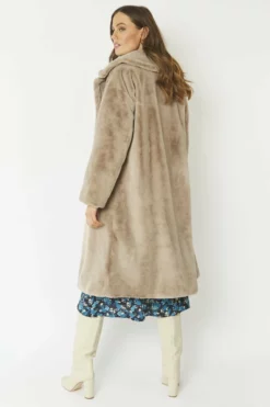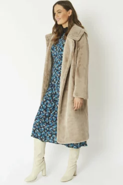 Cut to a flattering mid-length this faux fur coat is a timeless piece that’s associated with glamour and elegance. Featuring side pockets, full lining and peaked lapels, this coat is made to be worn open, and to accentuate your below dress or pair or trousers.