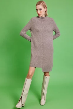 Crafted from our luxurious cashmere wool in versatile neutrals, this knitted jumper dress is a chic option for all year round. Featuring a high ribbed neckline and button up sides, this dress is lightweight and breathable allowing you to stay cool in Summer and warm in Winter. Pair it with ankle boots and a cross-body bag for an effortless off-duty look.