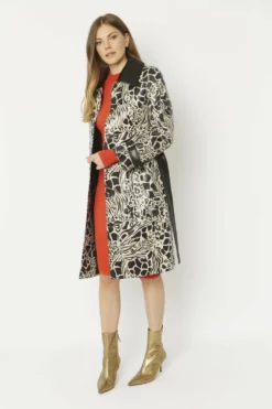 Our Faux Suede Midaxi Coat features a snakeskin base print followed by a contrasting animal print.