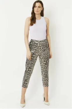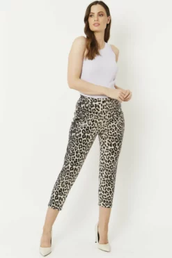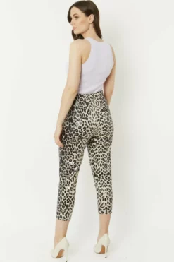 Leopard Print Faux Suede Trousers