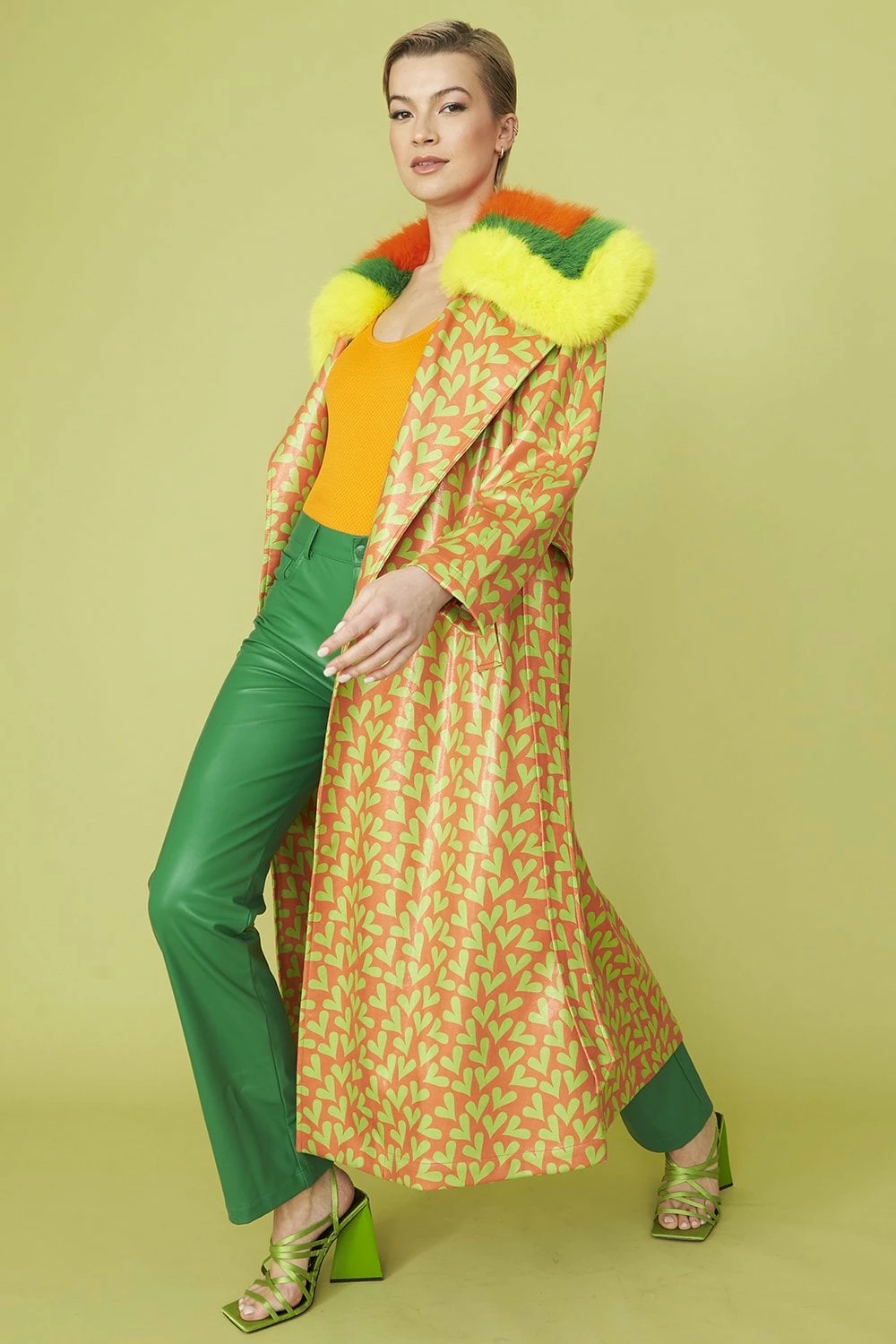 Luxurious soft faux suede trench coat with cute love heart shimmer print with pockets and belt fastening.