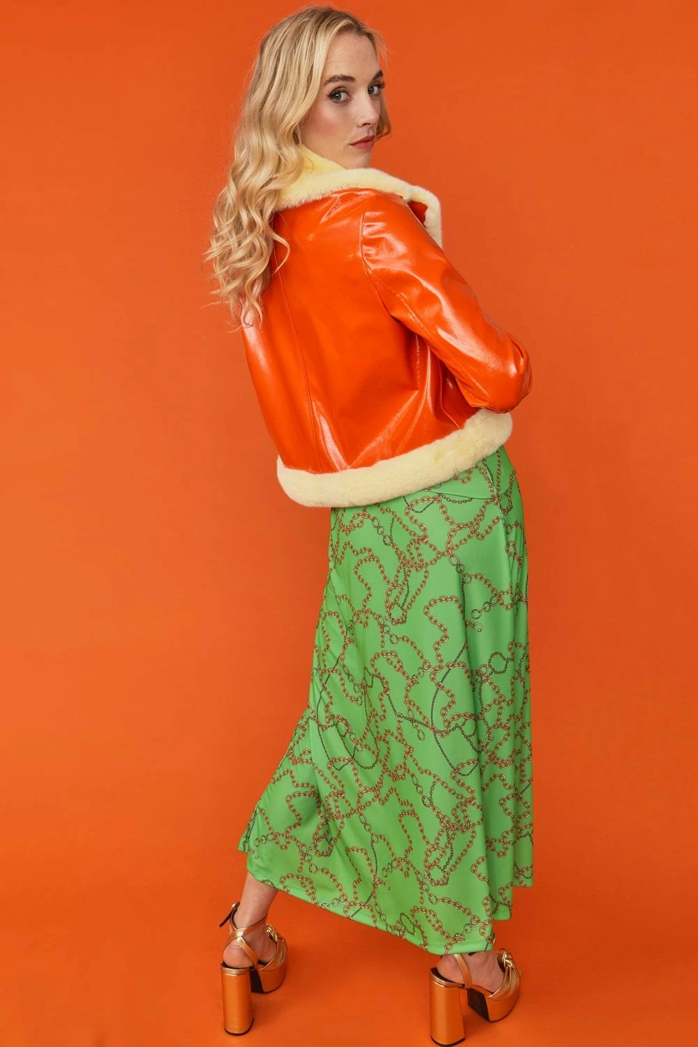 Stand out from the crowd in this black faux patent leather Aviator style jacket and turn heads wherever you go. The flight jacket may be classic in style but the faux fur trim gives it a modern twist. Featuring press stud closures, pockets that are a feature in their own right, and a leopard print lining that gives an added flash of pattern.