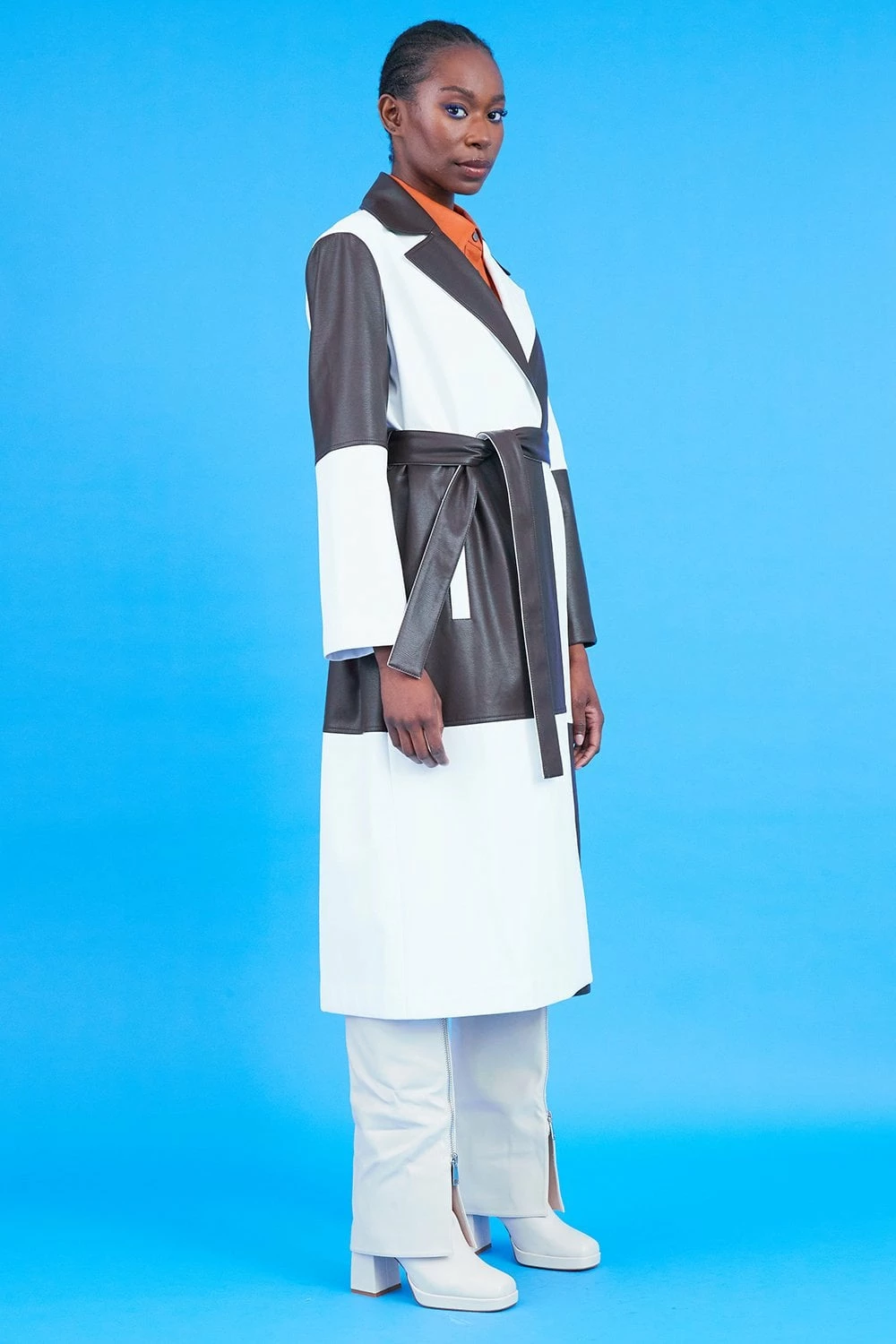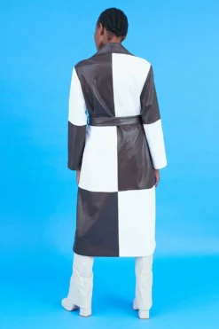 Stand out this season rocking our patchwork trench with pockets and belt! Featuring classic-style lapel with chequered design.