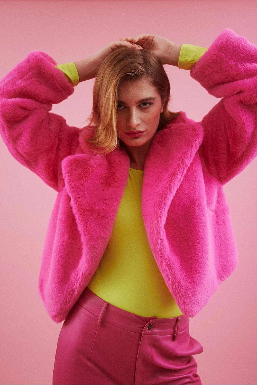 On-trend style and warmth, two of the key features of this faux fur cropped jacket, make it a timeless piece easy to wear all year round. Available in a variety of colours.