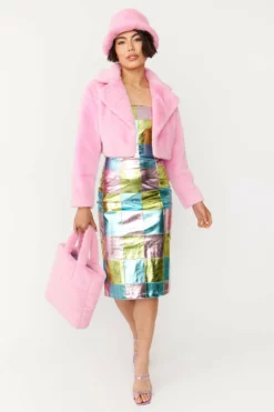 On-trend style and warmth, two of the key features of this faux fur cropped jacket, make it a timeless piece easy to wear all year round, so perfect to keep that summer breeze off your shoulders. Available in a variety of colours.