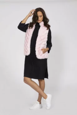 This gorgeous diagonal striped gilet is a go-to piece for country days and can be layered over any look. The sensationally soft faux fur adds texture to your favourite outfit whilst ensures you stay cosy throughout the colder months. It can be styled over knitwear, wet look jeans and a cute heeled boot for a casual evening look.