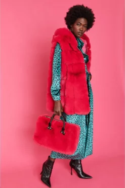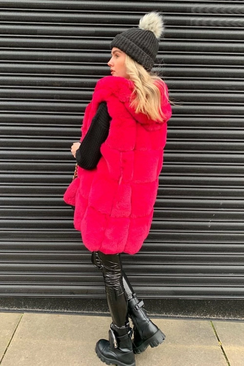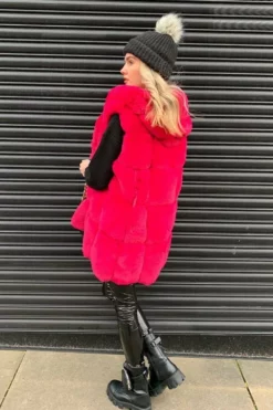 The ideal layering piece, this long faux fur gilet with hood, pockets and snap fasteners is a versatile piece, which has a silhouette-lengthening effect for a chic appeal. Made from the finish of faux fur materials this gilet will quickly become a wardrobe favourite; and with a wide variety of colours, there’s one for every outfit.