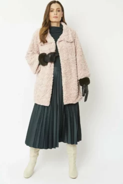 Wrap yourself in luxury in this cosy and elegant faux fur coat. Featuring long sleeves and a soft and textured touch, this coat is sure to keep you warm during the cold winter months. Wear with an elegant maxi dress for a special occasion or with smart trousers and chic top for an everyday look.