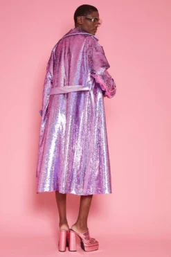 So much more than just a trench coat. This velvet trench coat is adorned with sequins, giving you a luxurious statement-making entrance!