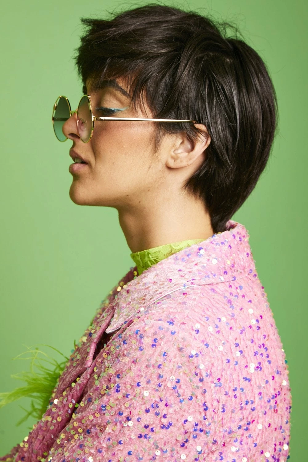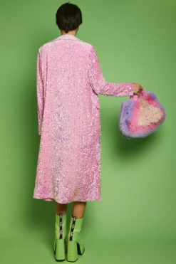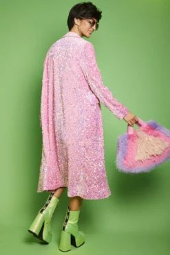 So much more than just a trench coat. This velvet trench coat is adorned with sequins, giving you a luxurious statement-making entrance.