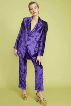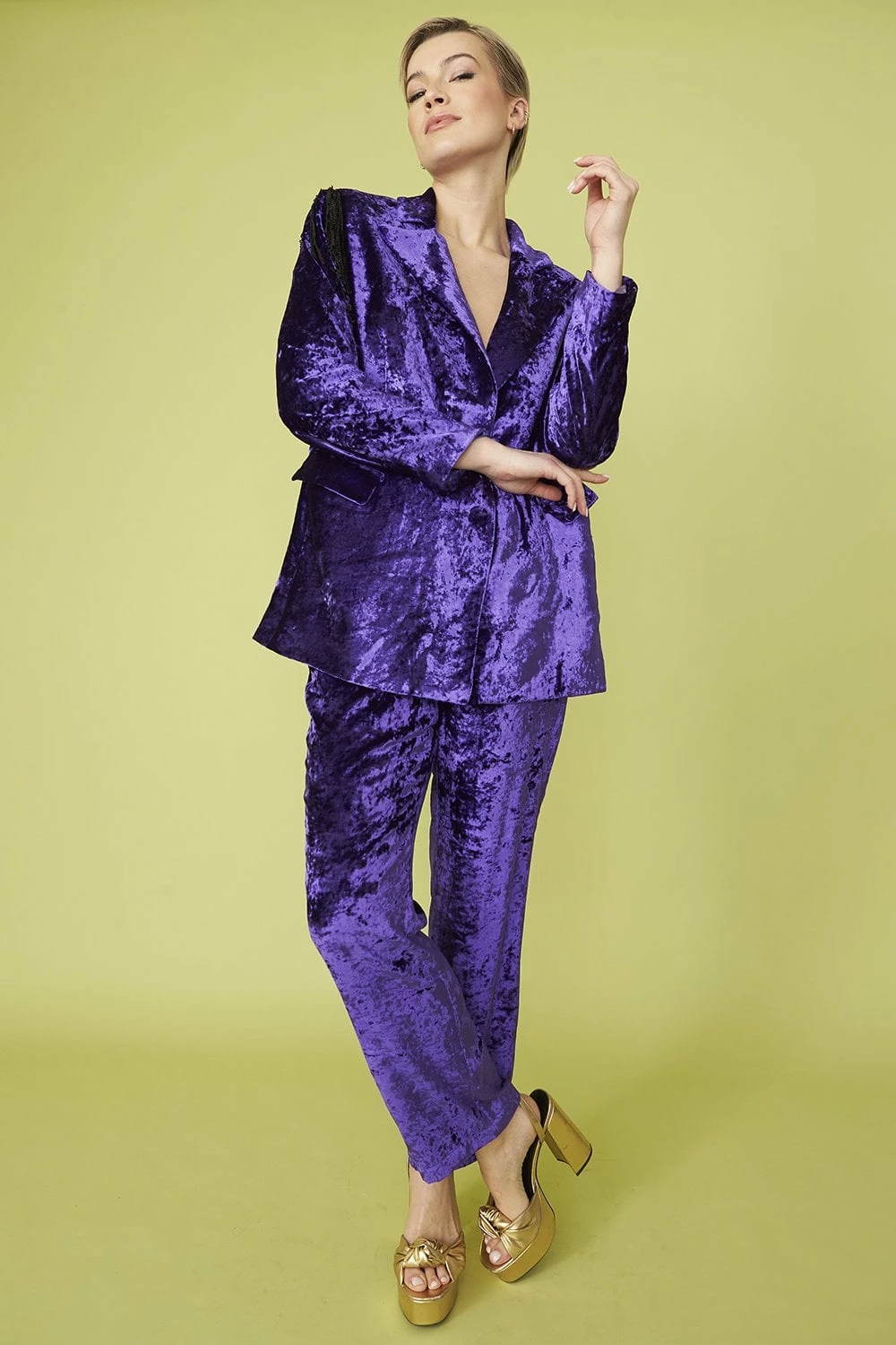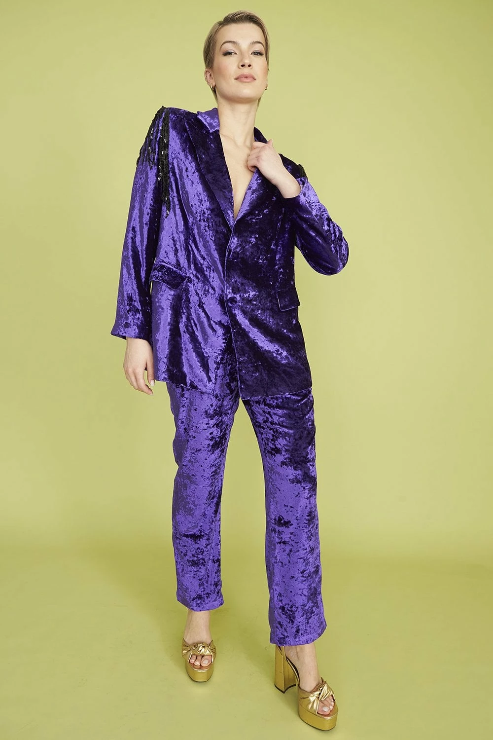 Upgrade your blazer collection with our gorgeous crushed velvet double-breasted blazer with black tassel shoulder detail. this blazer features, pockets, silk lining and padded shoulders.
