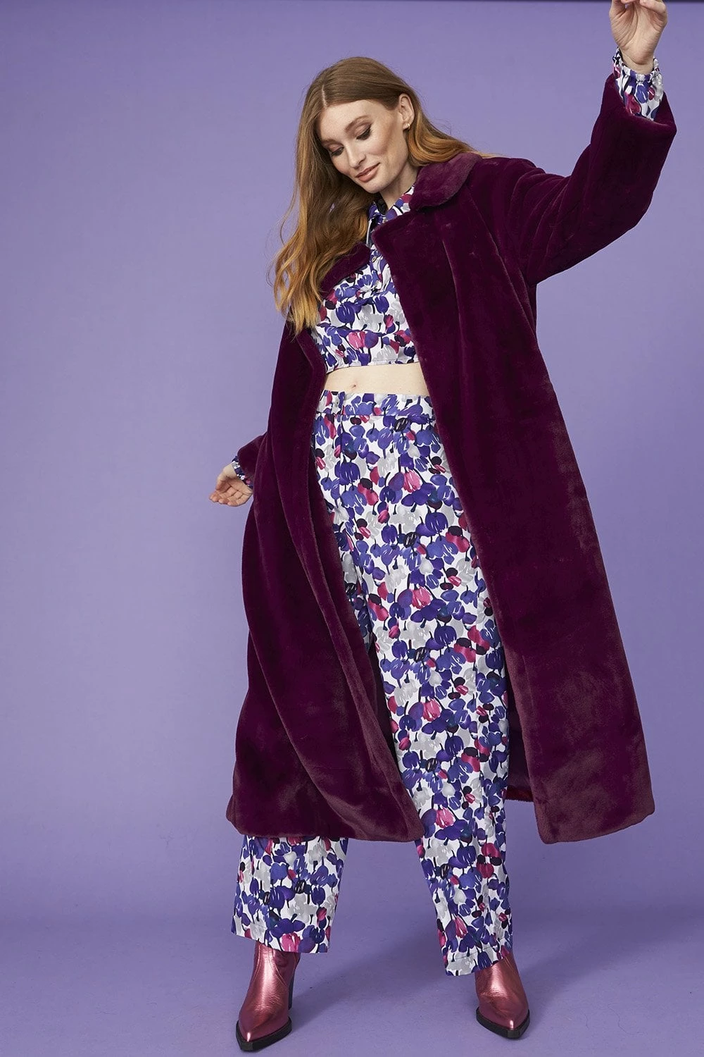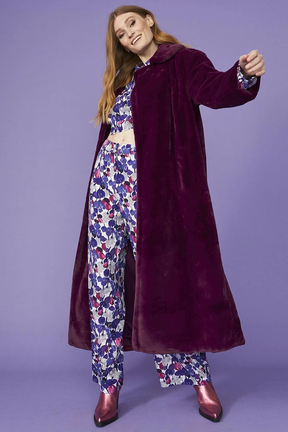 Shop this faux fur vintage-inspired coat a luxe piece that’s perfect for transitioning from day to night. We love the oversized shaping, long length and of course the feeling of total comfort and luxury.This coat features full satin lining and pockets.