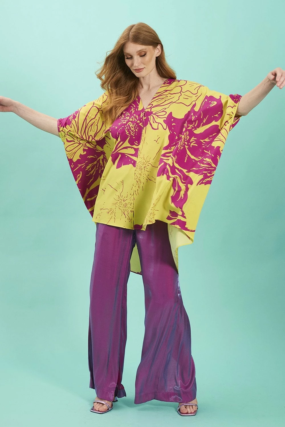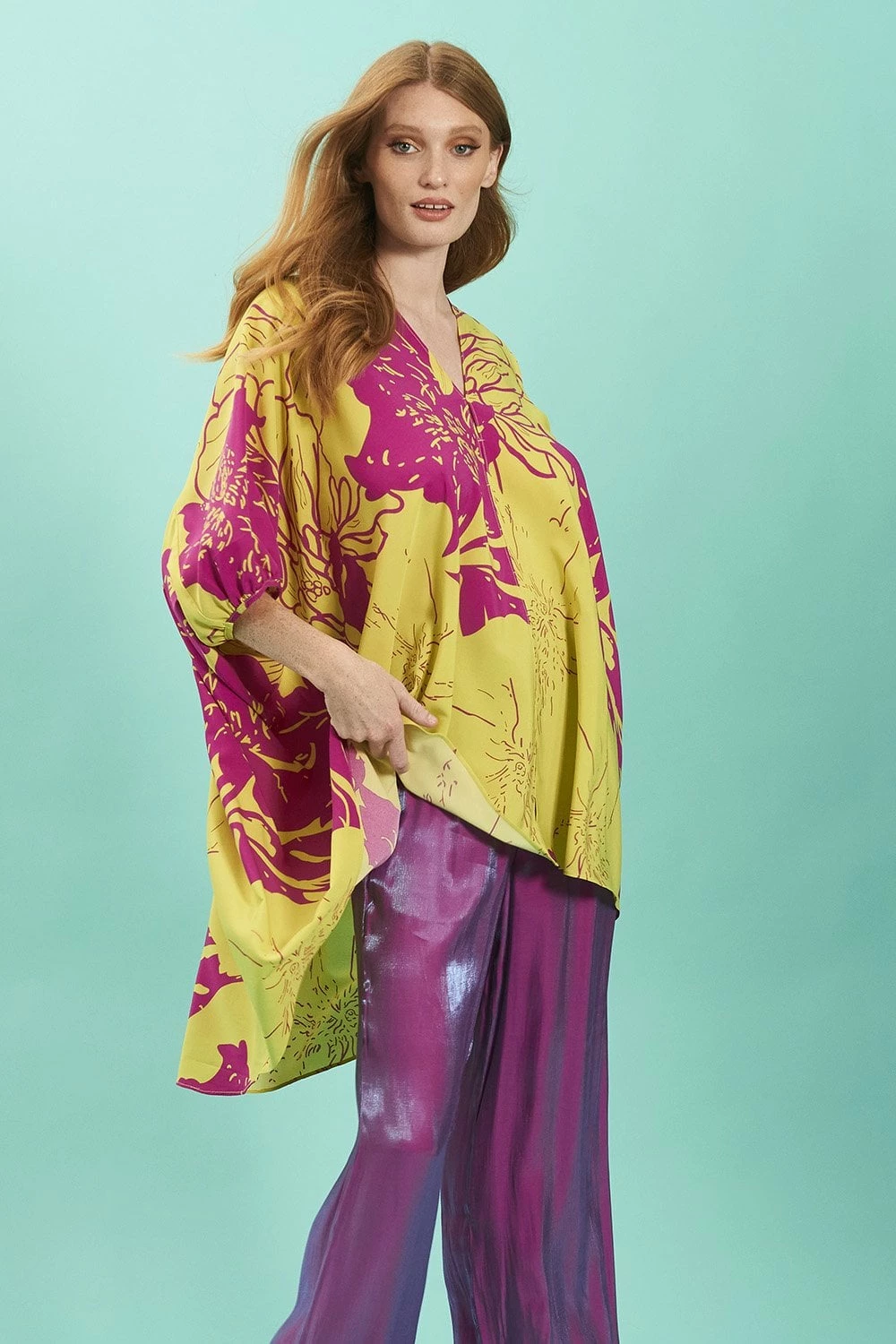 Nothing says summer like a rayon blend Kimono. Our Midi Kimono in yellow and pink has been made with long sunny days and hot summer nights in mind. A midi style with a tie at the waist to give it a flattering finish, long sleeves and detailed cuffs. it’s ultra comfortable and breezy. Our favourite feature of the dress is the abstract print.