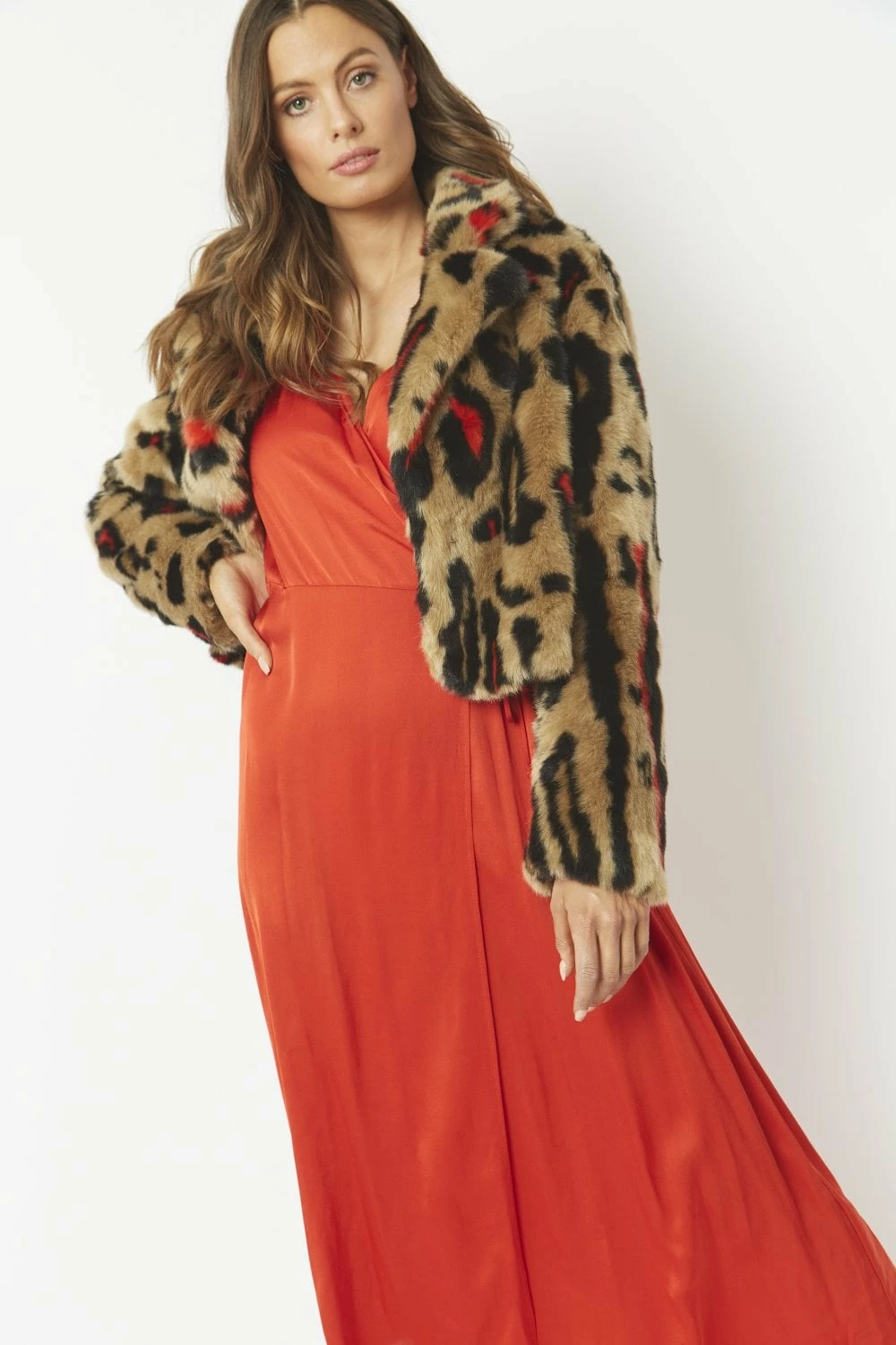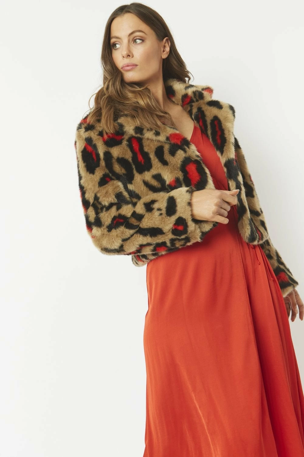 A versatile pice, this cropped faux fur jacket with contrasting colours incorporated through the leopard print, is a bold piece that adds both warmth and style to your wardrobe.