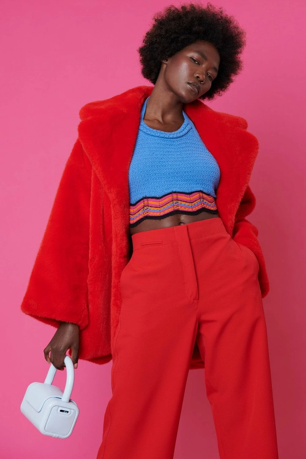 Jayley’s iconic faux fur midi coat with silk blend lining is a real statement piece. Beautiful and bold this sumptuously soft coat will keep you warm and in style throughout the cold wintry months.