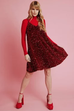 We’re going all out this party season in this incredibly beautiful bold blue cami dress that shimmers in the slightest light. A soft velvety feel with silk lining for extra comfort, this dress features adjustable straps and a ruffle design and asymmetrical hem.