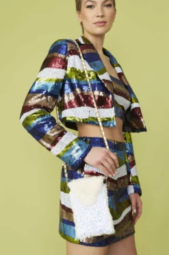 Looking to make a statement this sequin blazer is perfect for doing just that, featuring classic lapels and a flattering striped design