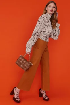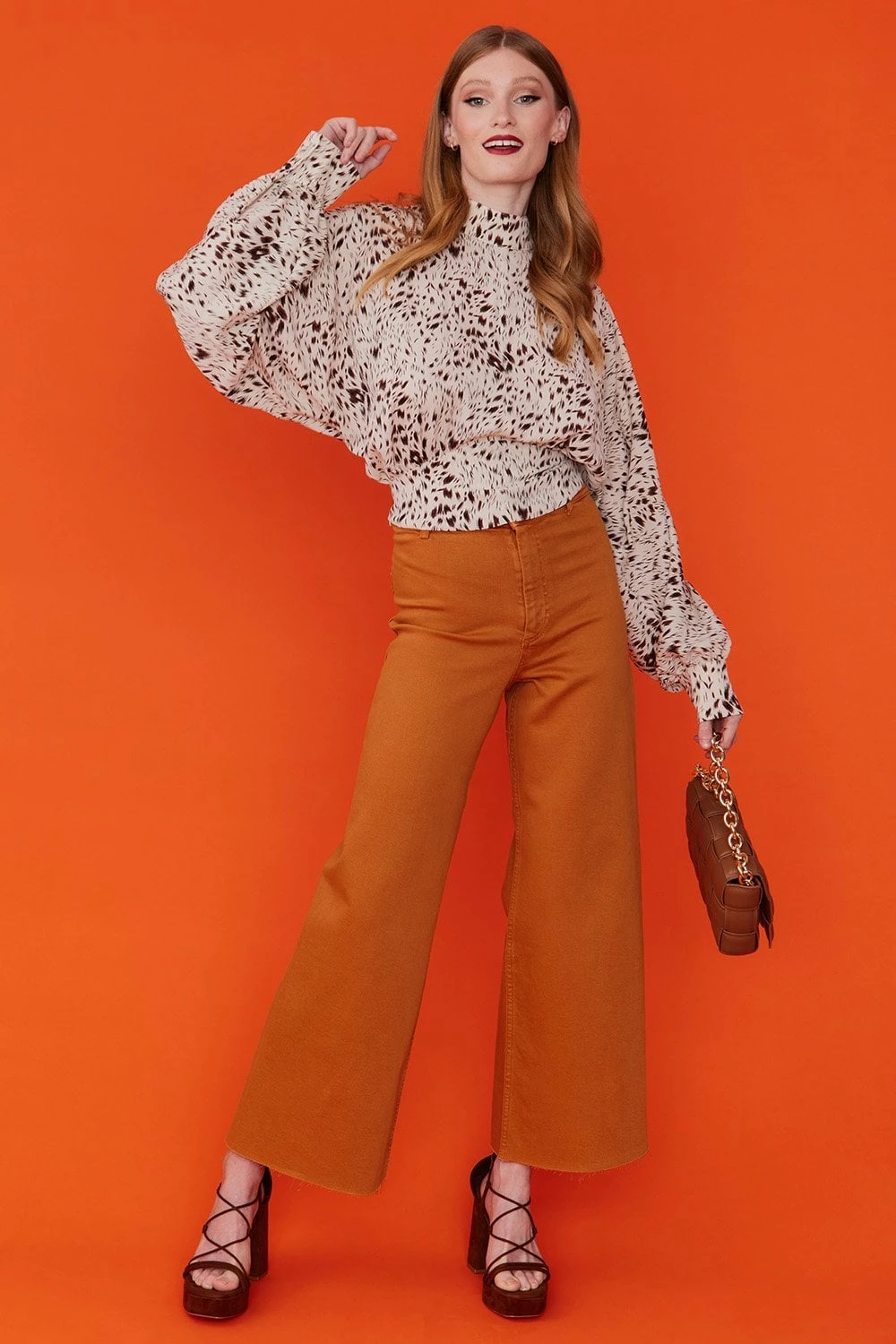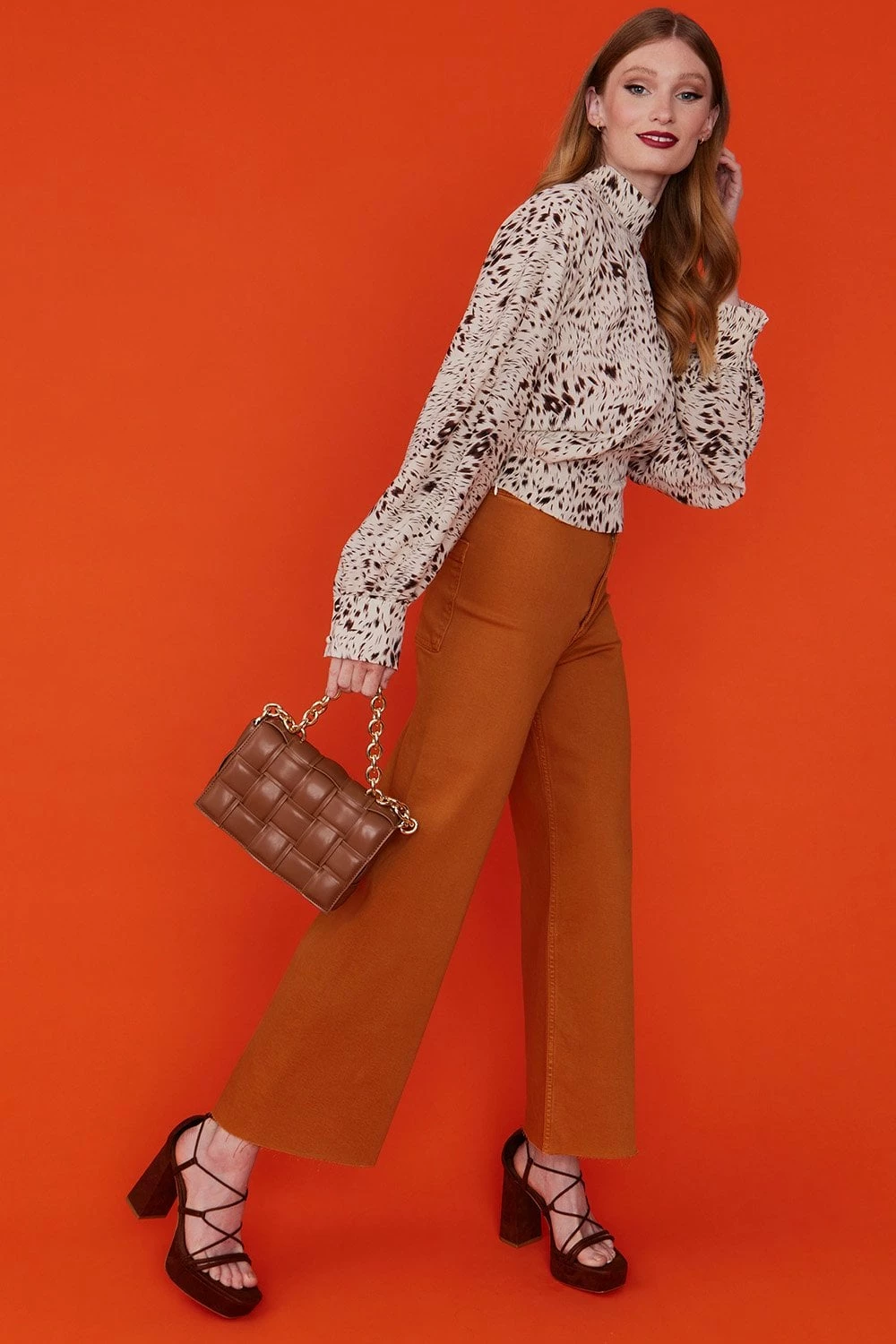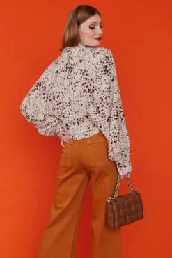 This animal print style blouse will take you from drinks to dancing after. Our Silk-blend blouse is designed to give a relaxed and loose fit, featuring a high neck, balloon sleeves and double button cuffs. Pair with jeans and heels for a smart-casual look.
