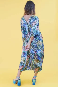 Keep cool in our oversized kimono featuring a gorgeous blue and green design, perfect for all year round.