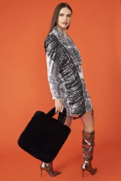 We’re absolutely crushing on this crushed velvet blazer dress. Whether you wear it open or fastened this dress is perfect for your colder weather occasions. Featuring full silk lining, padded shoulders, pockets and double lapels.