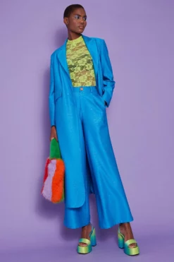 As seen on the catwalk at MODA Fashion Show! This bold and beautiful trench coat features a tie belt waist, pockets and classic lapels. The back of this jacket features a chiffon split adding extra flare and movement to the trench.