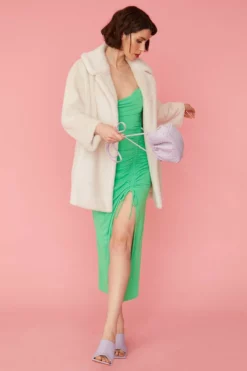 Cut to a flattering mid-length this faux fur coat is a timeless piece that’s associated with glamour and elegance. Featuring side pockets, full lining and peaked lapels, this coat is made to be worn open, and to accentuate your below dress or pair or trousers.
