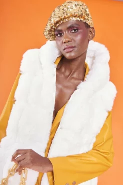 The ideal layering piece, this long faux fur gilet with hood, pockets and snap fasteners is a versatile piece, which has a silhouette-lengthening effect for a chic appeal. Made from the finish of faux fur materials this gilet will quickly become a wardrobe favourite; and with a wide variety of colours, there’s one for every outfit.