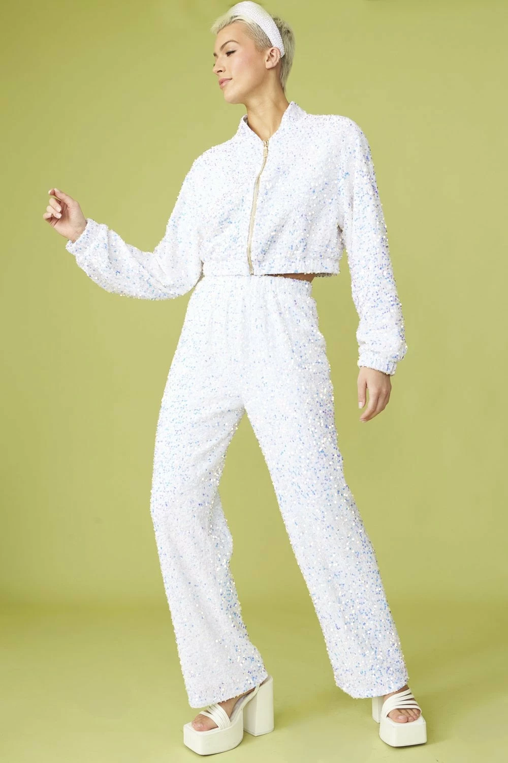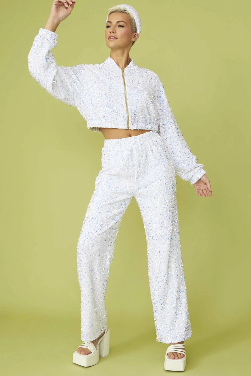 Needing something comfortable but stylish? Our sequin-cropped biker jacket has you covered! Features a stunning Sequin ribbed texture that will help elevate any look of yours.