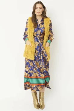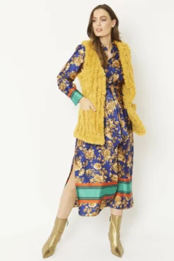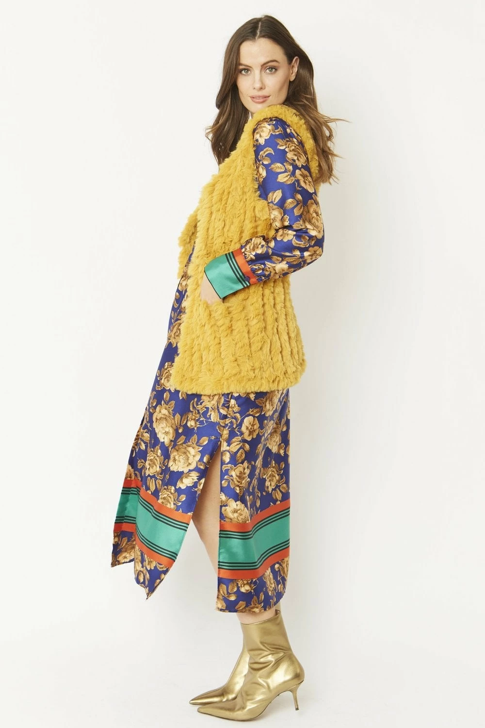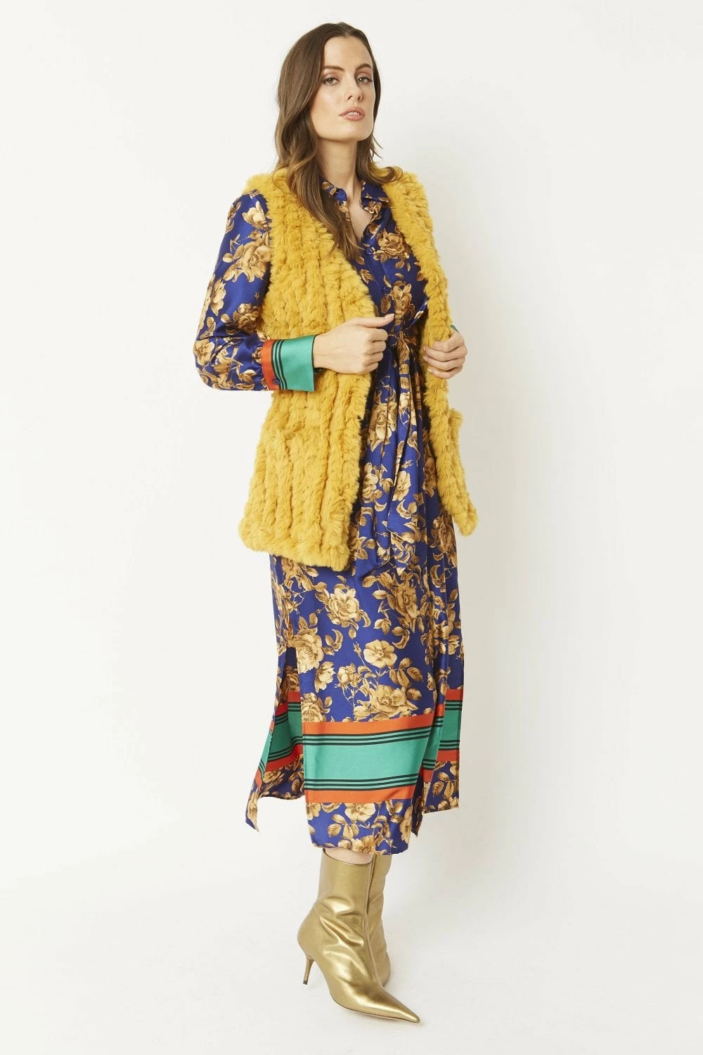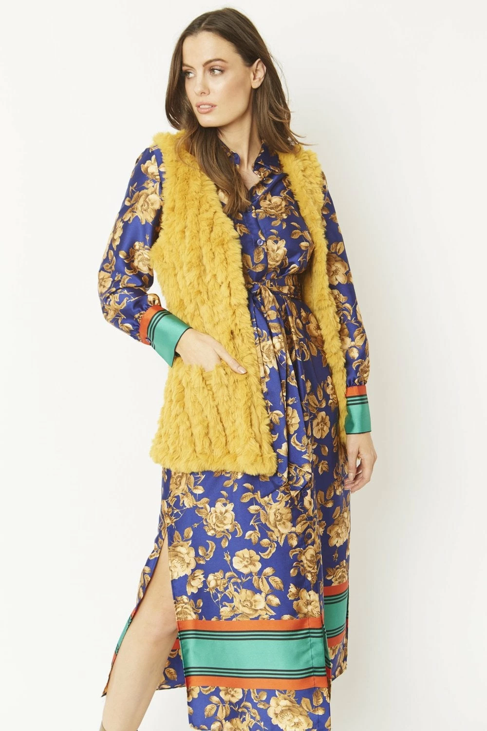 If you love to layer, then this faux fur and faux suede gilet is just what your collection needs. Featuring flattering vertical panneling, front hook and eye fastenings and a V-neck line.