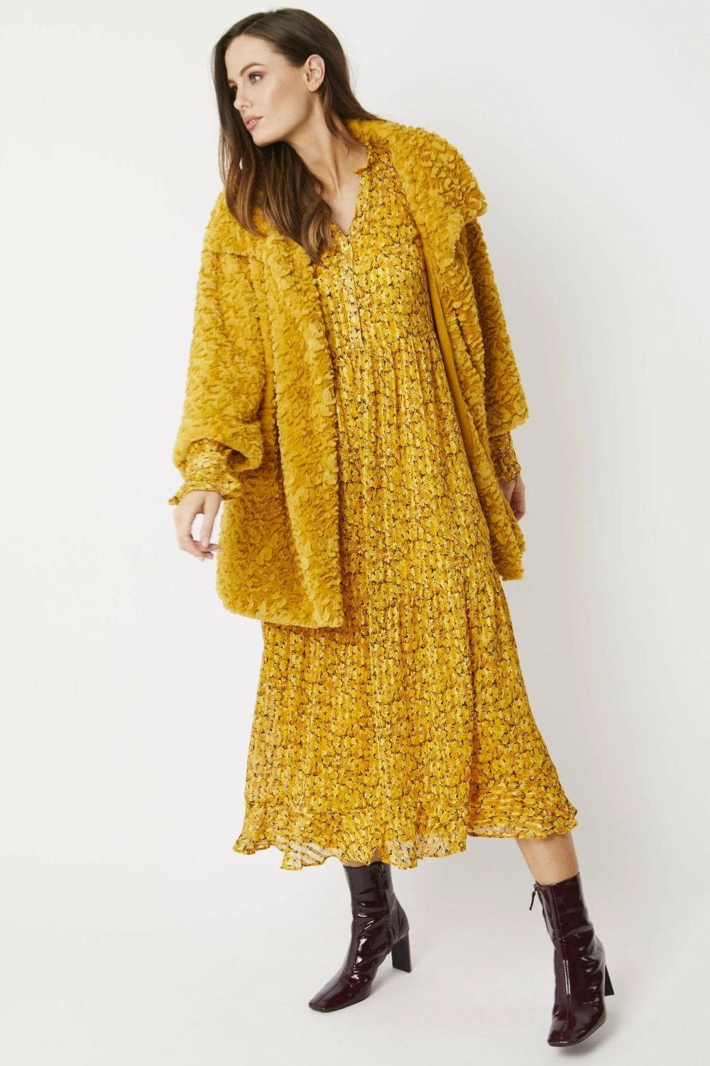 Wrap yourself in luxury in this cosy and elegant faux fur coat. Featuring long sleeves and a soft and textured touch, this coat is sure to keep you warm during the cold winter months. Wear with an elegant maxi dress for a special occasion or with smart trousers and chic top for an everyday look.