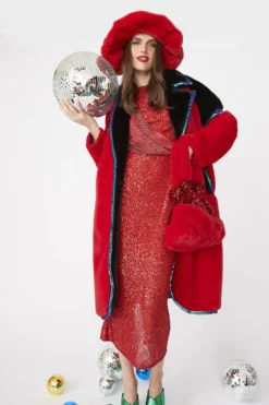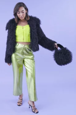 JAYLEY Black And White Faux Leather With Pink Faux Fur Biker Jacket