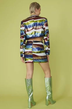JAYLEY Sequin Mulit-Coloured Blazer With Red Faux Fur Collar